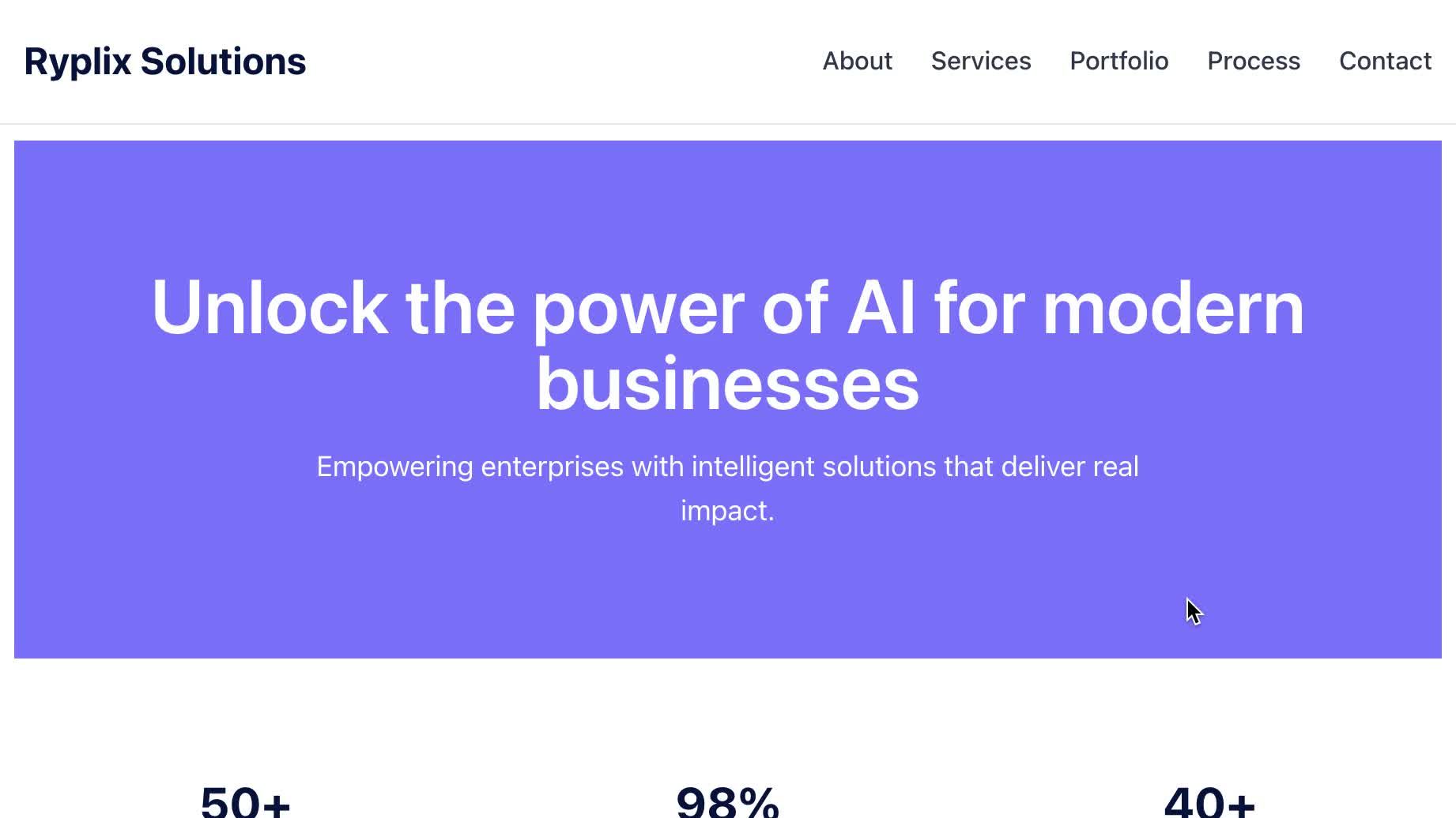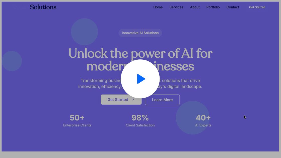 The hero section headline is: "Unlock the power of AI for modern businesses". The typography should be center aligned with more white space around it. The hero section can include brand color as background, creating a 10px white border around the hero section. Make sure the visuals tell the story of the headline.