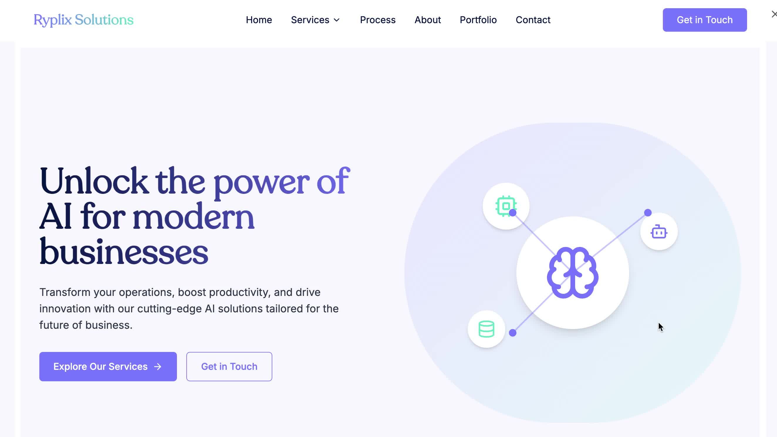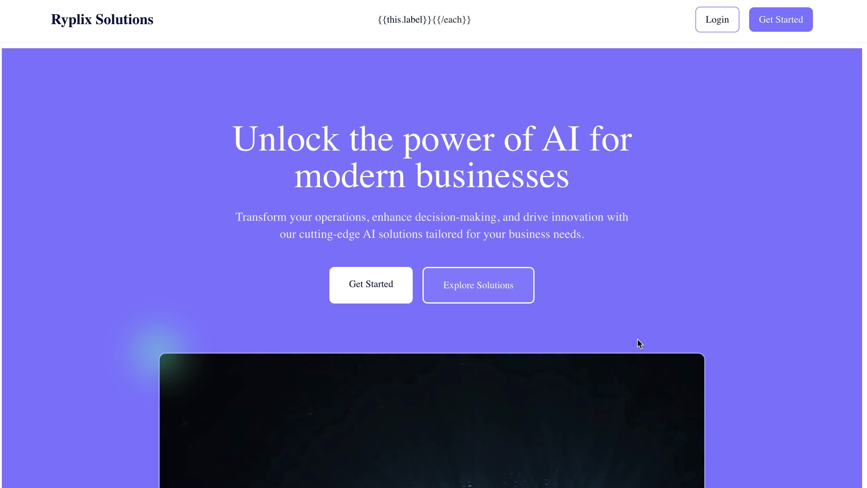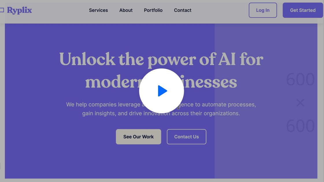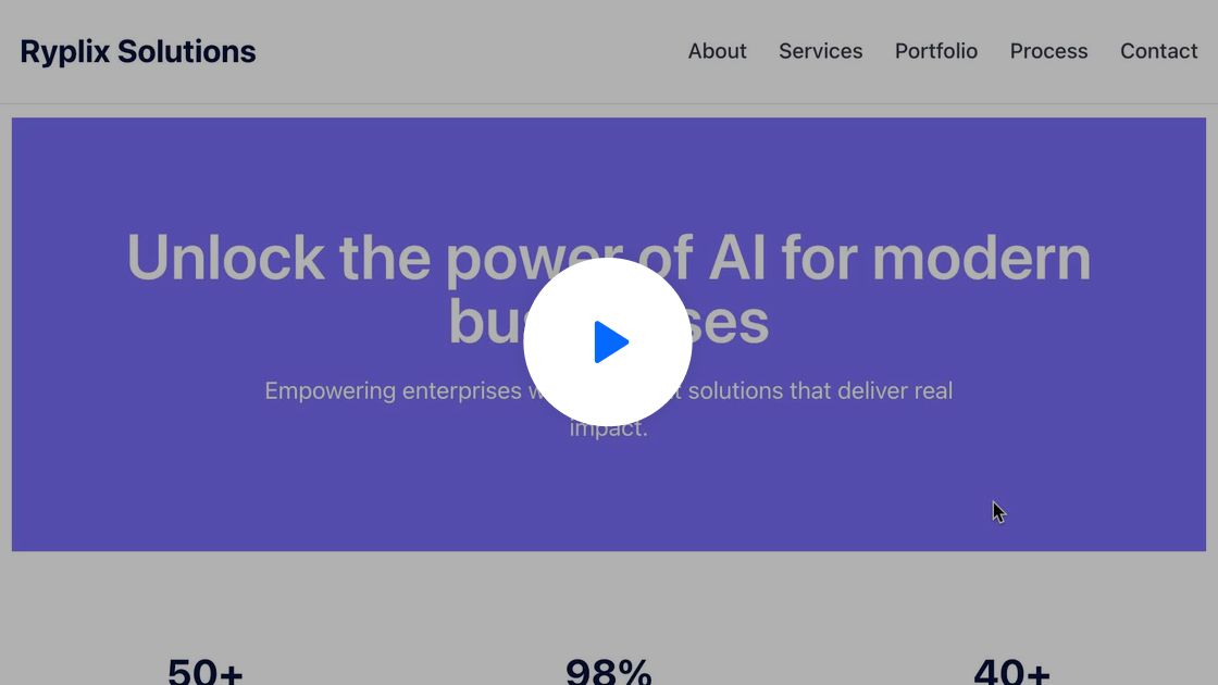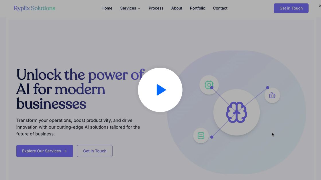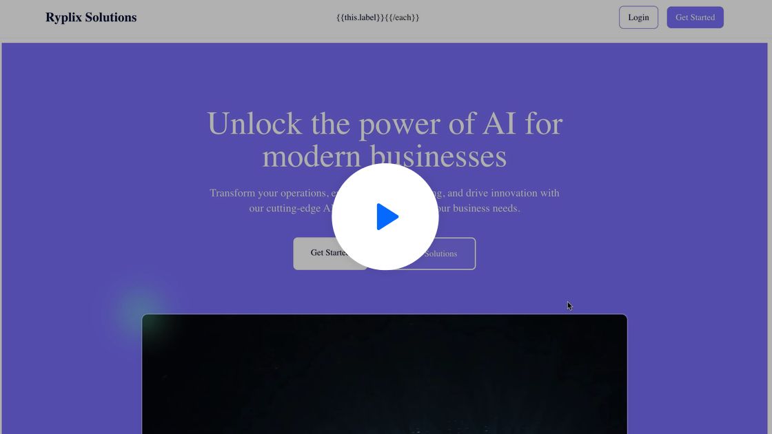Create a Tech & Digital website for Portfolio named "Ryplix Solutions" with a center aligned layout featuring complex header with navigation and detailed footer with multiple sections.